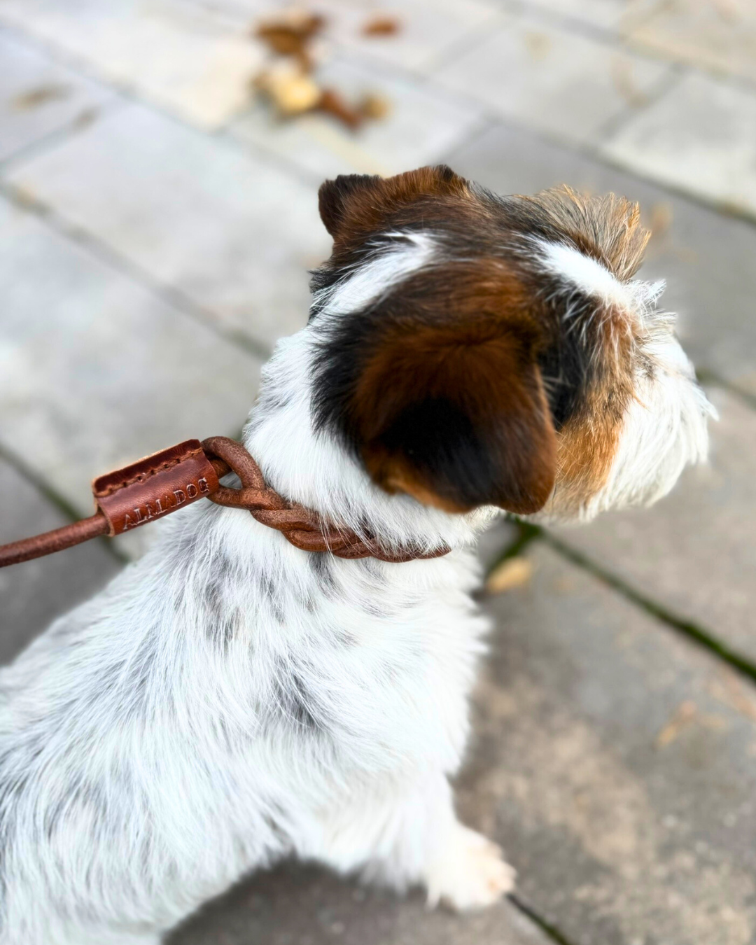 Lautlosleine: Lautlose Hundeleine inklusive Halsung und Zugstopp aus pflanzlich gegerbtem Rundleder - praktisch, absolut lautlos und super leicht!