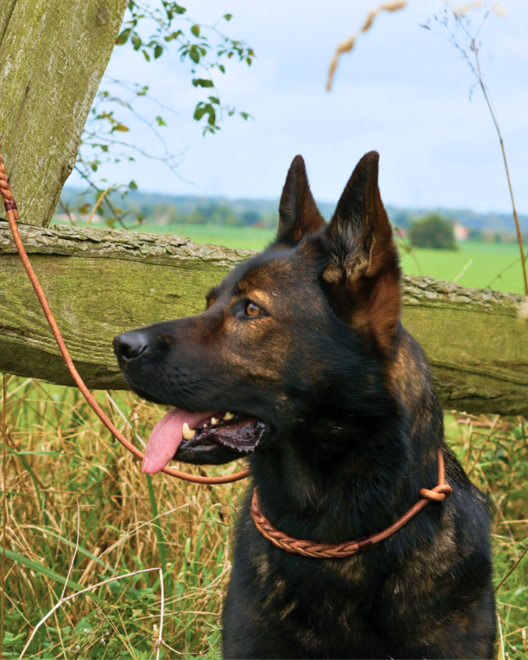 Auf leisen Sohlen durch Wald und Wiesen pirschen, ohne lästiges Geklapper. Die Flüsterleine ist ideal für entspanntes Spazieren, leises Pirschen und Jagen oder auch einfach zum bequemen Leinentraining. Da die weiche Leine um den Körper gehangen wird, sind die Hände frei. Dabei hat der Hund genug Leinenlänge, um locker neben seinem Menschen zu laufen, zu sitzen oder auch zu liegen. Zugstoppleine - durch einen flexiblen Knoten und einen Lederschieber kann die Halsung für deinen Hund genau passend eingestellt werden.